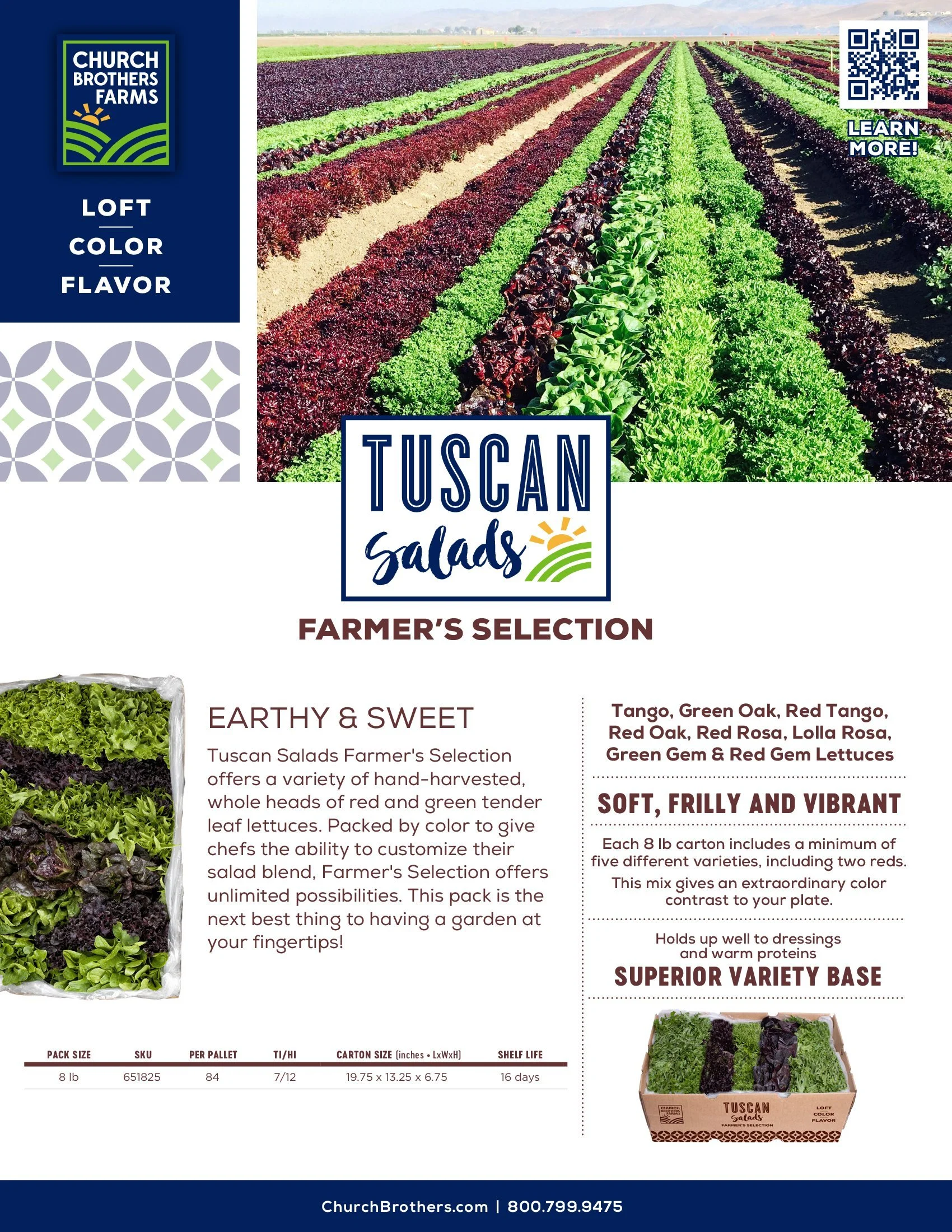 Sell Sheets Retail | Foodservice | Herbs | whole leaf | green onionS Retail Products Retail Menu Convenience Veg Line Bulk Family Packs Club Packs Brussels Sprouts Green Beans Green Onions Little Gem Petite Romaine Ready to Use Romaine& Green Leaf Sugar Snap & Snow Peas Back to Top Food Service All Products | Tender Leaf | Specialty | Fresh Cut Salads & Slaws | Value Added Vegetables All Products Food Service All Product Sheet Tender Leaf Tender Leaf Headquarters Arugula Baby Kale Blend Italian Greens Baby Kale Blend Spinach Tuscan SaladsThe Original & Organic Tuscan SaladsColor & Crunch Tuscan Salads Supreme Green Urban Blend Specialty Little Gem Petite Romaine Sweet Baby Broccoli Sweet Baby Cauliflower Sweethearts Tuscan Salads Farmer Selection Fresh Cut Salads & Slaws Fresh Cut Salads Menu Kale Chopped Rainbow Crunch Kale Color Crunch Veggie Power Slaw Value Added Vegetables Bell Peppers Florets: Broccoli & Cauliflower Brussels Sprouts Back to Top Herbs Retail Menu Back to Top Whole Leaf Whole Leaf Menu Burger & Sandwich Leaf Whole Leaf Kale Ready Leaf Easy Pack Stack Pack Washed & Trimmed Romaine Back to Top Green Onions Green Onions Back to Top