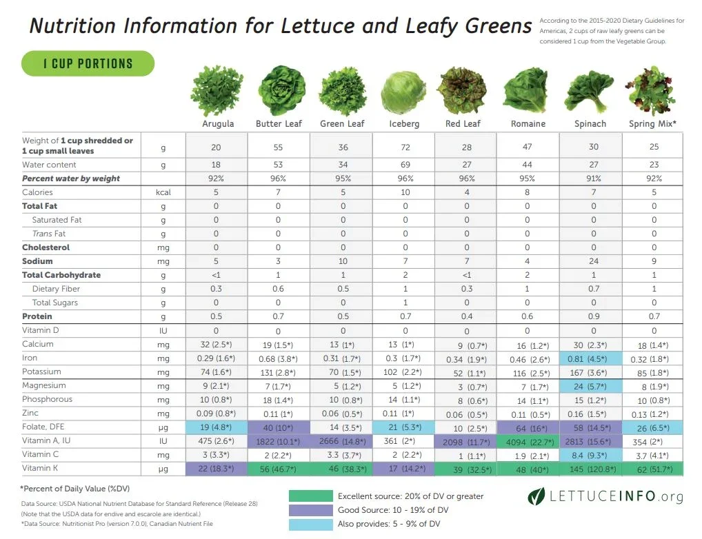 Click on graphic for up to date nutritional details compliments of the LGMA.