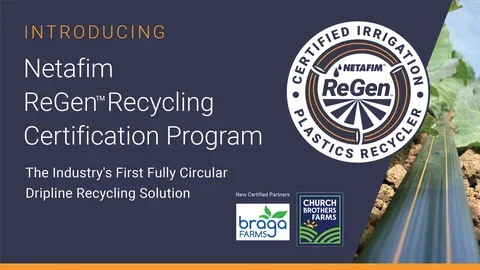 FRESNO, Calif.--(BUSINESS WIRE)--Netafim, Orbia’s Precision Agriculture business, has launched the Netafim ReGen™ AgVantage Certification Program, creating a new standard for Netafim’s grower partners who have demonstrated a commitment to sustainability by working with the company to reduce dripline plastic waste and minimize their environmental impact. The program is designed to provide an environmentally responsible way for farmers to recycle used dripline material and creates a closed-loop recycling process to reduce landfill waste.