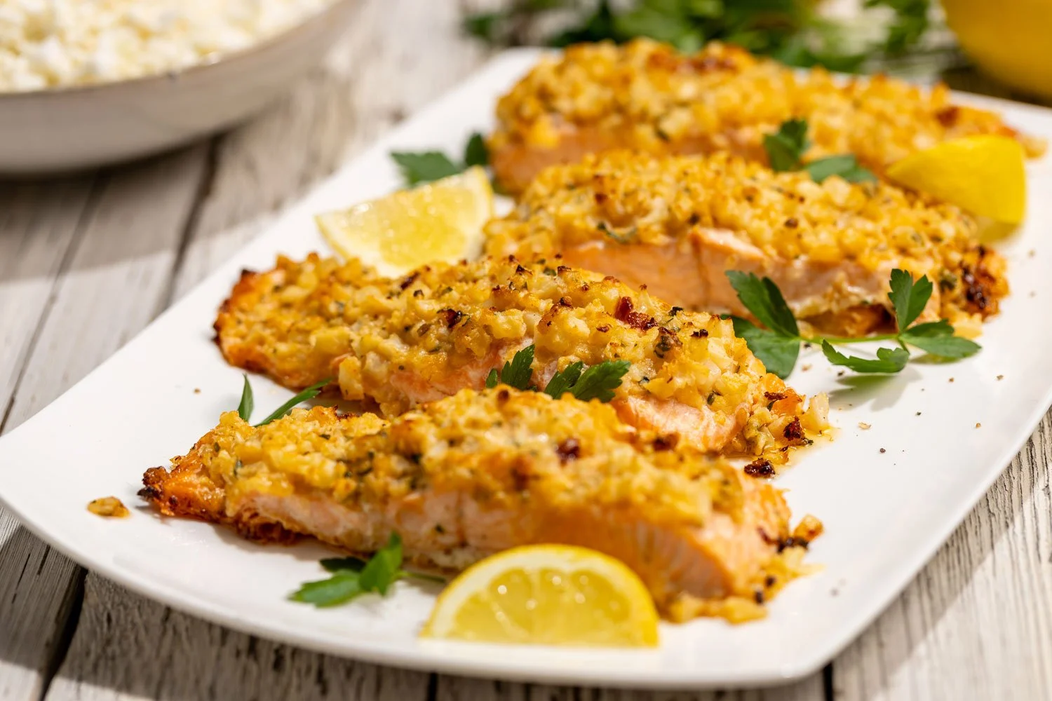 This golden cauliflower crust is the perfect easy topping for a variety of fish and meats. You can even store the pre-mixed crust for several days in the refrigerator until it’s ready to use, making it perfect for entertaining at home. The fact that it’s gluten free is just a side note.